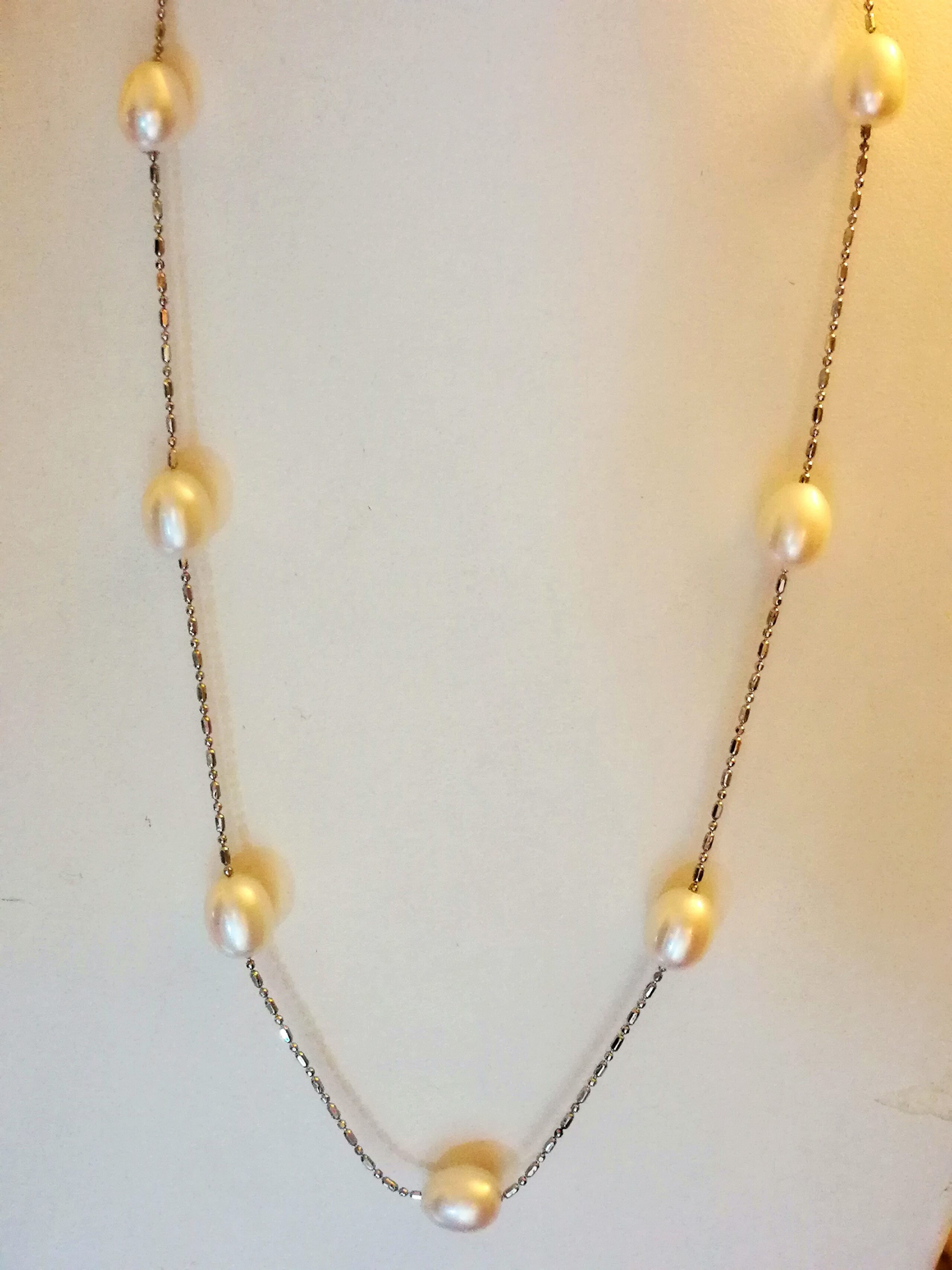 - Nr.14 // Weissgoldcollier 750er /18Kt Weissgold 5,05gr. 7 natürliche Akoyaperlen 40cm