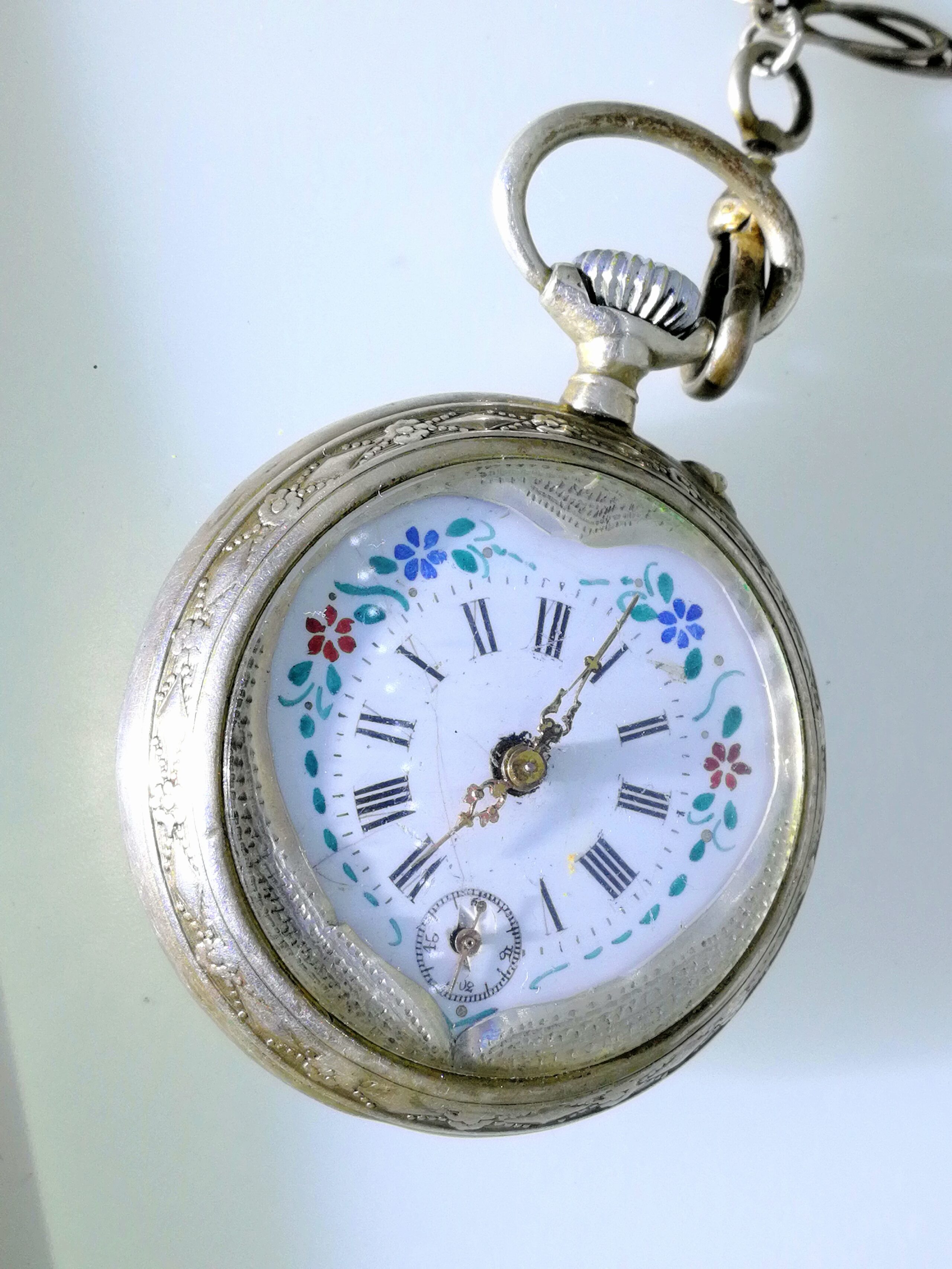 - Nr.115 // Taschenuhr Silber und eine Taschenuhrkette mit Anhänger Christopherus total ca. 83Gramm
