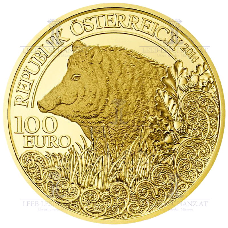 Österreich 100 Euro Gold, 2014, Das Wildschwein